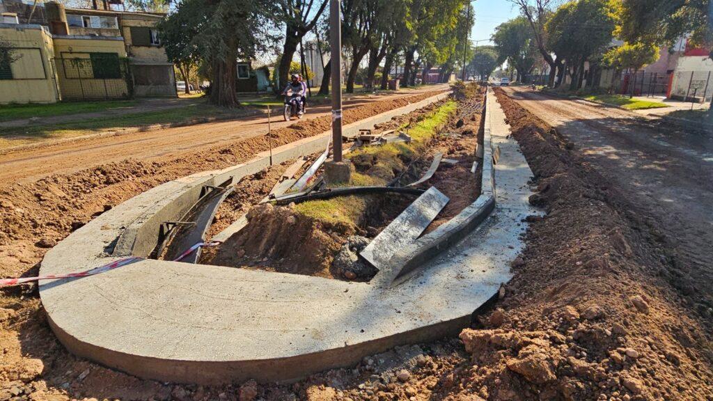 Con fondos propios, la Municipalidad de Colón lleva a cabo los trabajos del cantero central y la corrección de cordones.