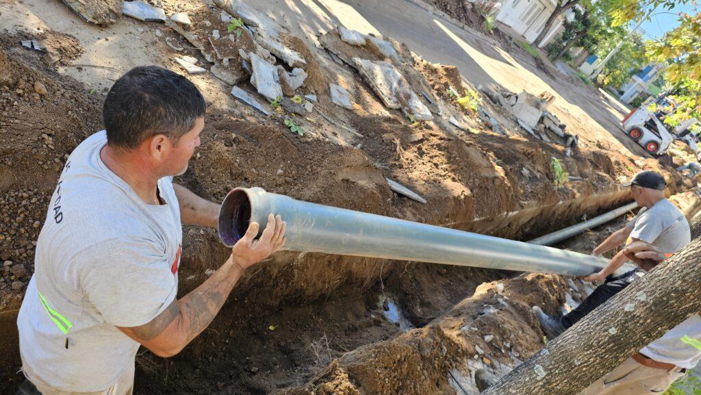 La Municipalidad de Colón lleva adelante el recambio de cañerías antiguas por conductos de mayor diámetro. Estas tareas técnicas resultan fundamentales para optimizar la presión del suministro y asegurar la durabilidad de la futura pavimentación con adoquines.