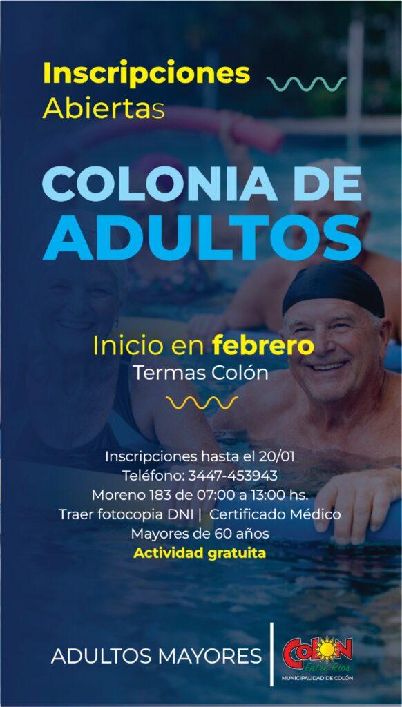 La Municipalidad de Colón anuncia el inicio del período de inscripción para una nueva edición de la “Colonia de Adultos”, una propuesta recreativa y saludable diseñada específicamente para los ciudadanos de la tercera edad. Las actividades tendrán lugar en el predio de las Termas Colón, ofreciendo un entorno ideal para el esparcimiento y el ejercicio físico adaptado.
