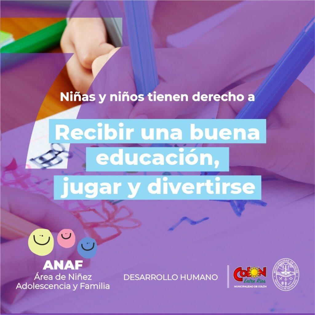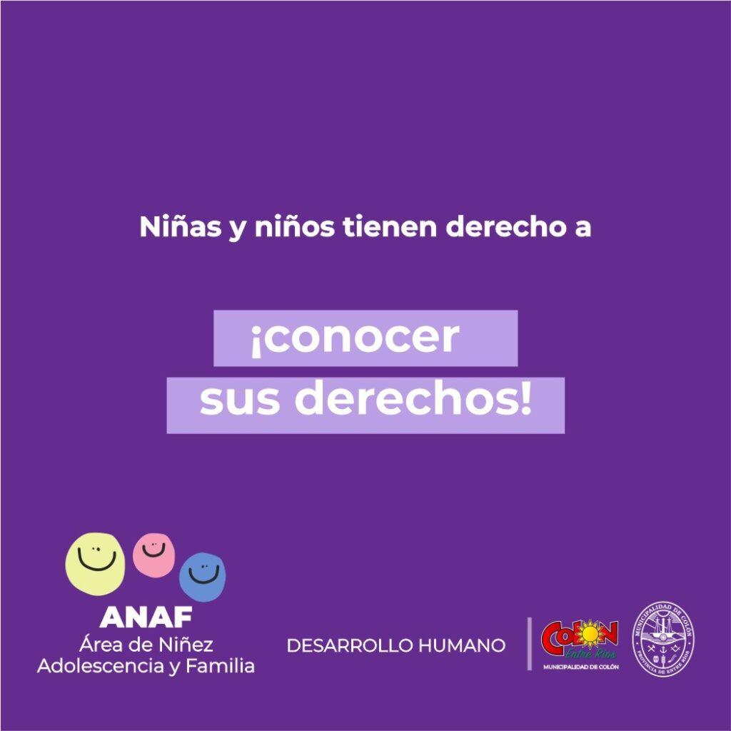 La Municipalidad de Colón, a través del Área de Niñez, Adolescencia y Familia (ANAF) dependiente de la Secretaría de Desarrollo Humano, presentó una campaña de sensibilización sobre derechos de la infancia y la adolescencia. La iniciativa busca informar, prevenir vulneraciones y fortalecer las redes de acompañamiento familiar y comunitario en la ciudad.