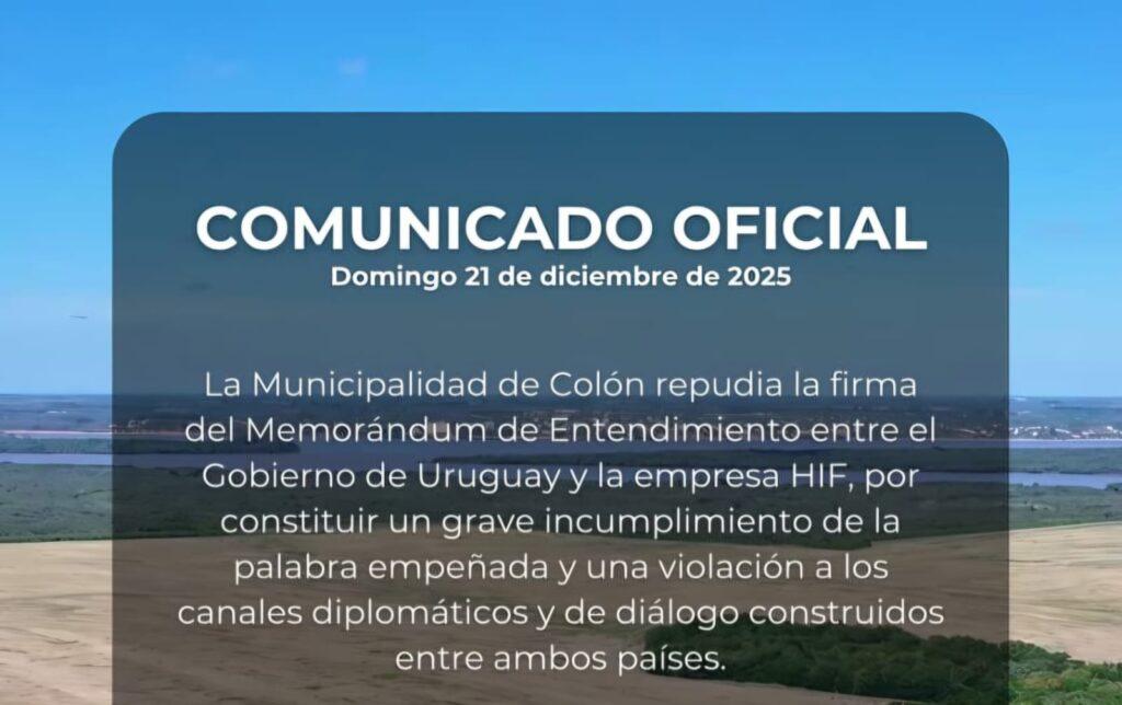 La Municipalidad de Colón repudia Memorándum de Entendimiento entre Uruguay y HIF Global