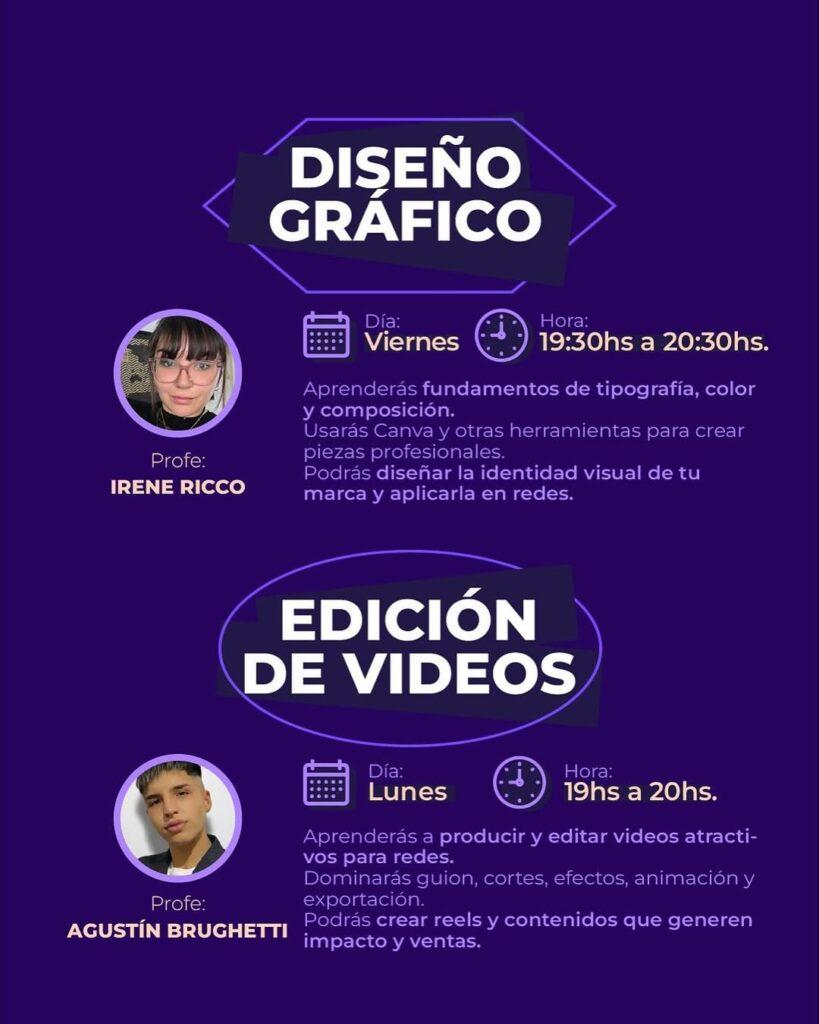 - Edición de videos – Lunes, 19:00 a 20:00 (Prof. Agustín Brughetti).