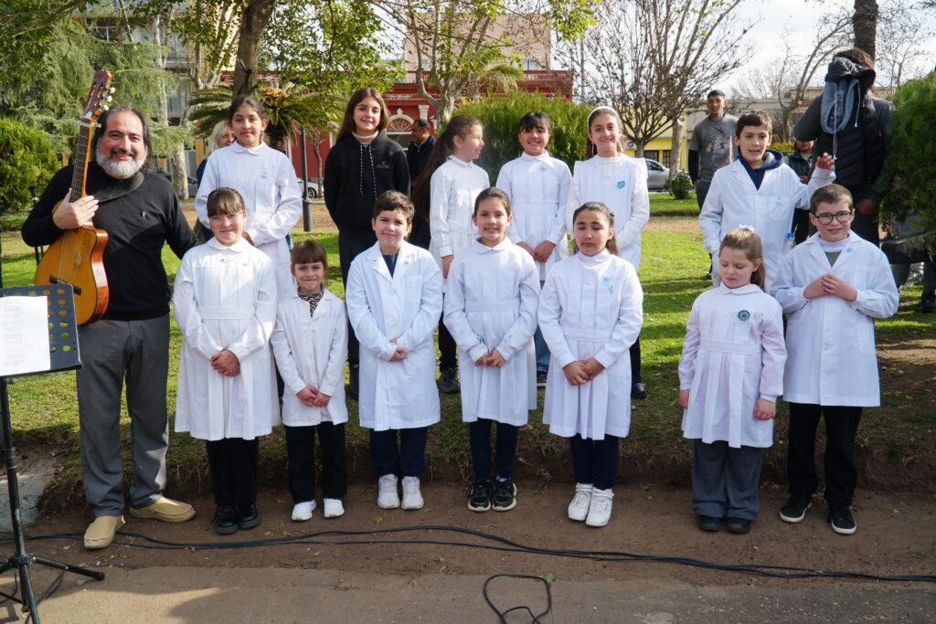 El Coro de Niños de Colón aportó el marco artístico de la ceremonia, integrando voces de alumnas y alumnos de establecimientos educativos de la ciudad. La intervención musical buscó acercar a las nuevas generaciones a la figura del Libertador, reforzando la dimensión pedagógica del acto.