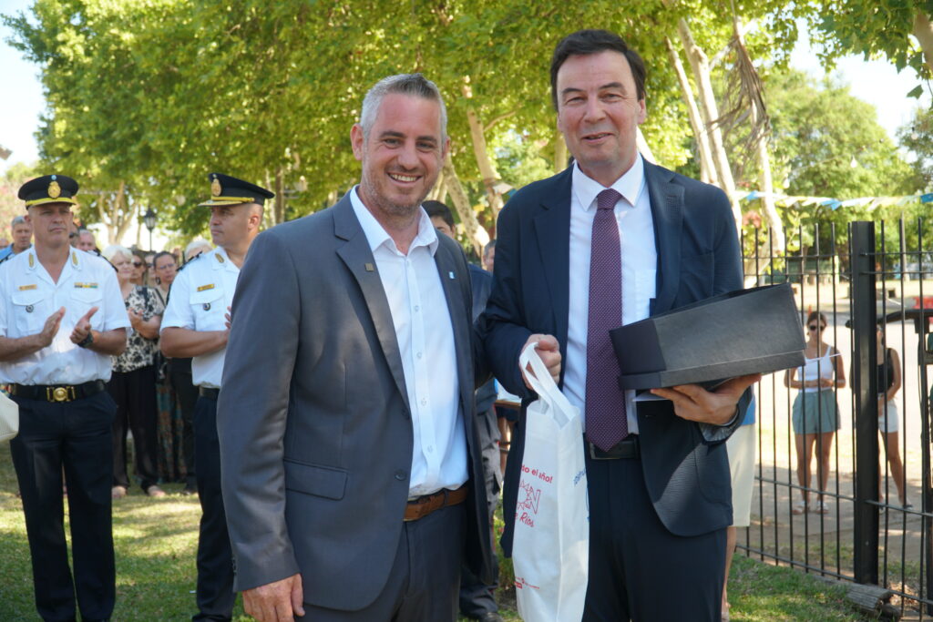 La ceremonia fue presidida el presidente municipal de Colón, José Luis Walser y la vicegobernadora de Entre Ríos, Alicia Aluani, y contó con la participación de autoridades locales, provinciales, representantes institucionales, vecinos y una destacada comitiva de autoridades de Suiza, en el marco de los 20 años de hermanamiento entre Colón y la ciudad de Sion.