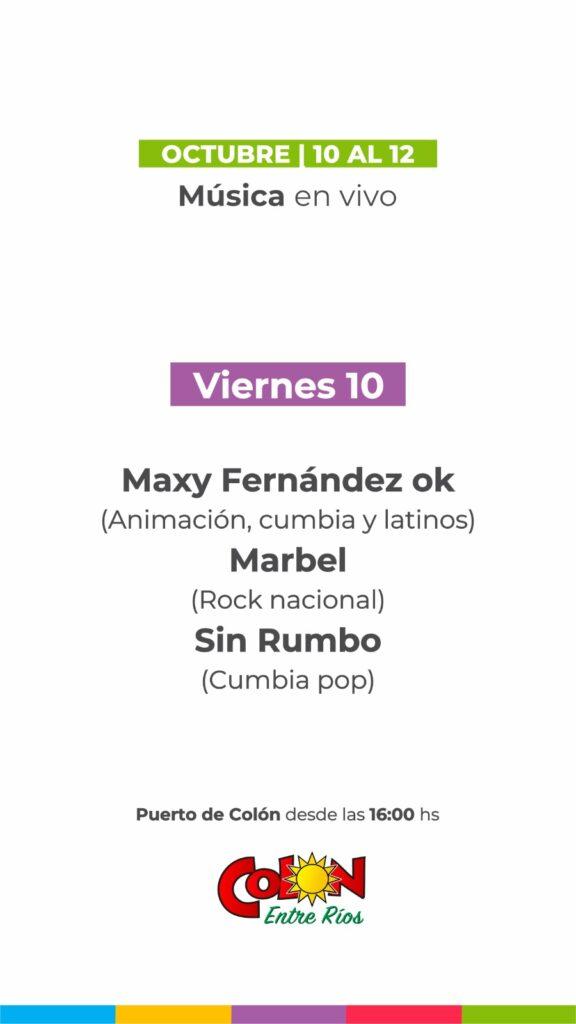 Maxy Fernández OK (Cumbia y latino), Marbel (Rock Nacional) y Sin Rumbo (cumbia pop).