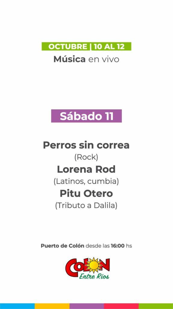 Perros sin Correa (Rock), Lorena Rod (Latinos y cumbia), Pitu Otero (Tributo a Dalila).