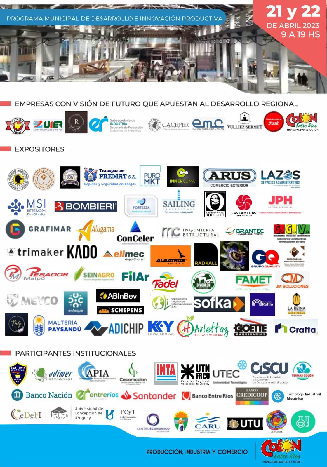 En el marco del Programa Municipal de Desarrollo e Innovación Productiva que lleva adelante la Dirección de Empleo, Producción, Industria y Comercio de la Municipalidad de Colón, el próximo viernes 21 y sábado 22 de abril desde las 9 de la mañana, se realizará la segunda Feria Binacional de la Industria y de la Producción que nuclea a representantes del comercio, empresas, universidades, profesionales y emprendedores.