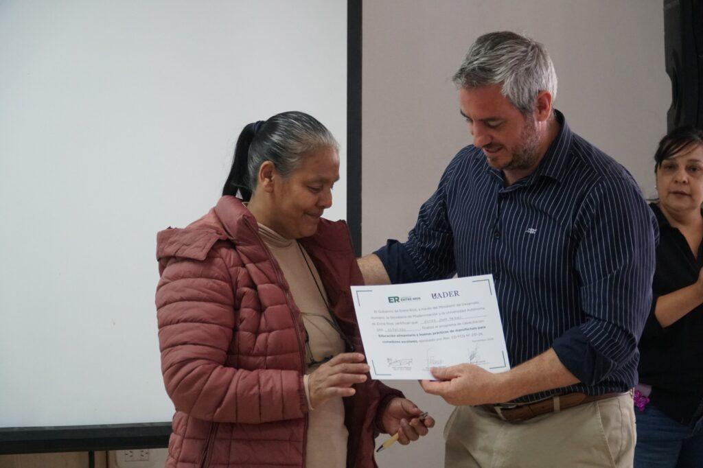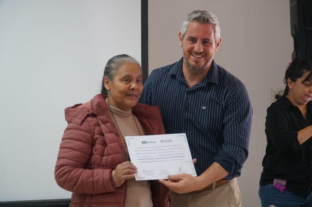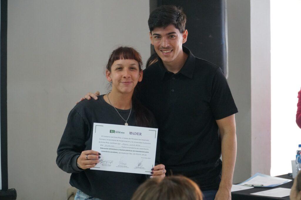 La encargada de Comedores Barriales de Entre Ríos, Daniela Tuyaré, valoró el compromiso de las trabajadoras: “Es un gran avance en modernización del Estado. En el departamento se asiste a 72 escuelas con 47 cocineras; ante emergentes como gas o refacciones, contamos con el apoyo del Municipio y de las comunidades educativas”.