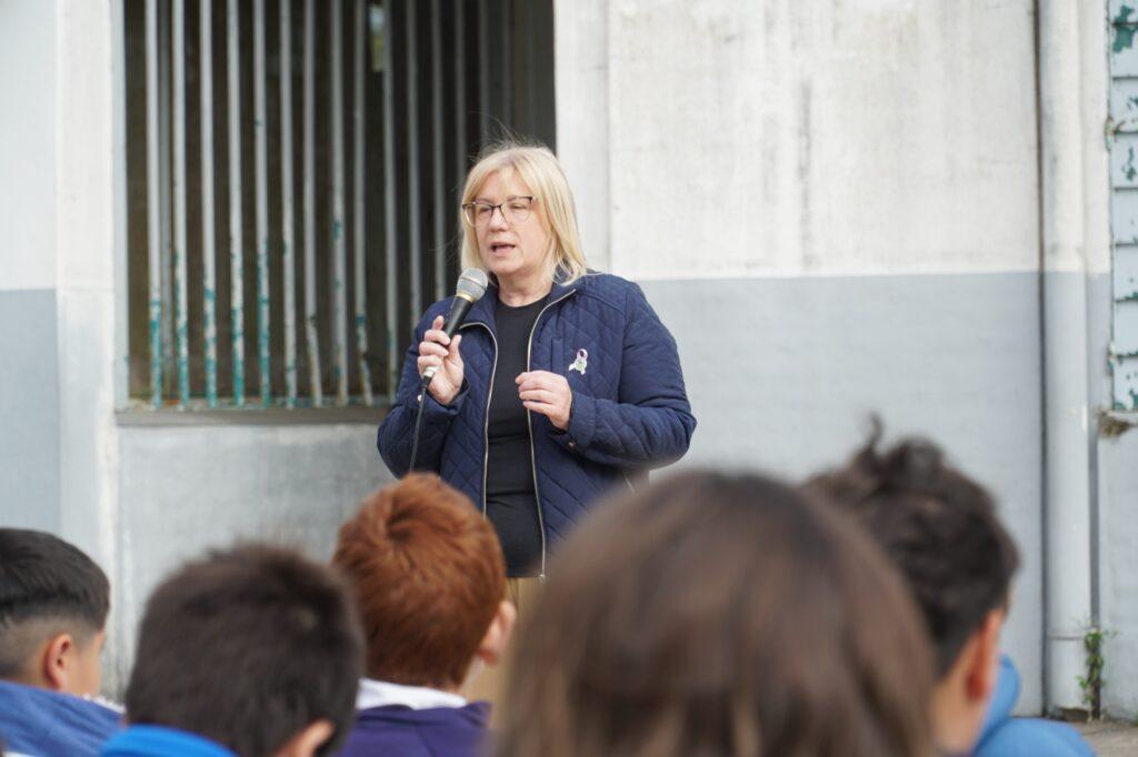 La Directora Departamental de Escuelas, Lina Bosch, destacó que “recibir y comprender los símbolos que nos identifican es reconocer el esfuerzo de generaciones que construyeron la ciudad y transmitir esos valores a las nuevas generaciones”.