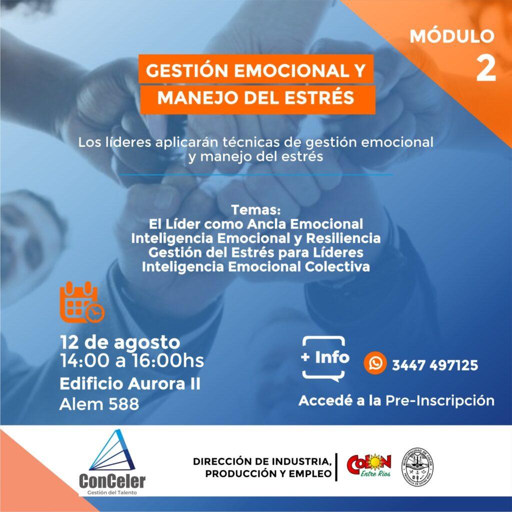 - Módulo 2 – Gestión Emocional y Manejo del Estrés (12 de agosto): técnicas de resiliencia personal, inteligencia emocional y liderazgo bajo presión.