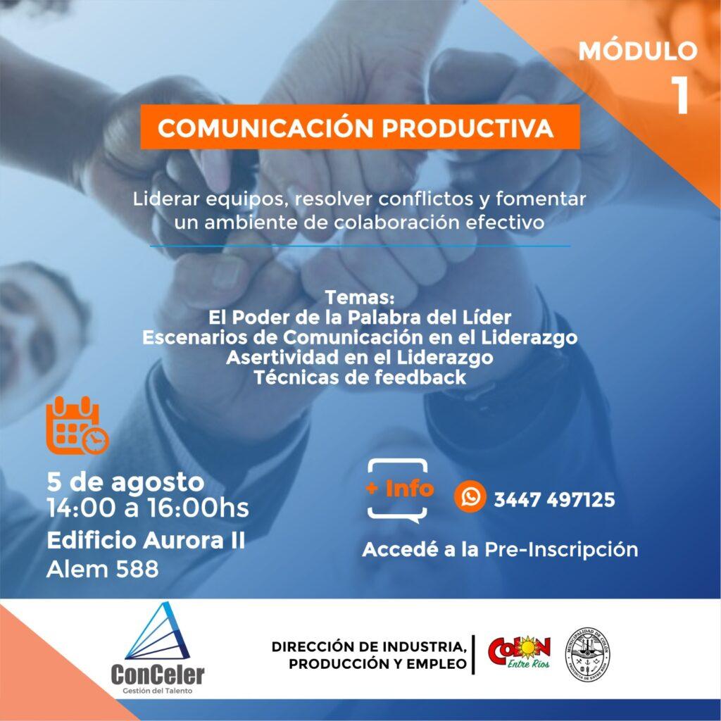 - Módulo 1 – Comunicación Productiva (5 de agosto): principios avanzados para liderar equipos, resolver conflictos y generar colaboración.