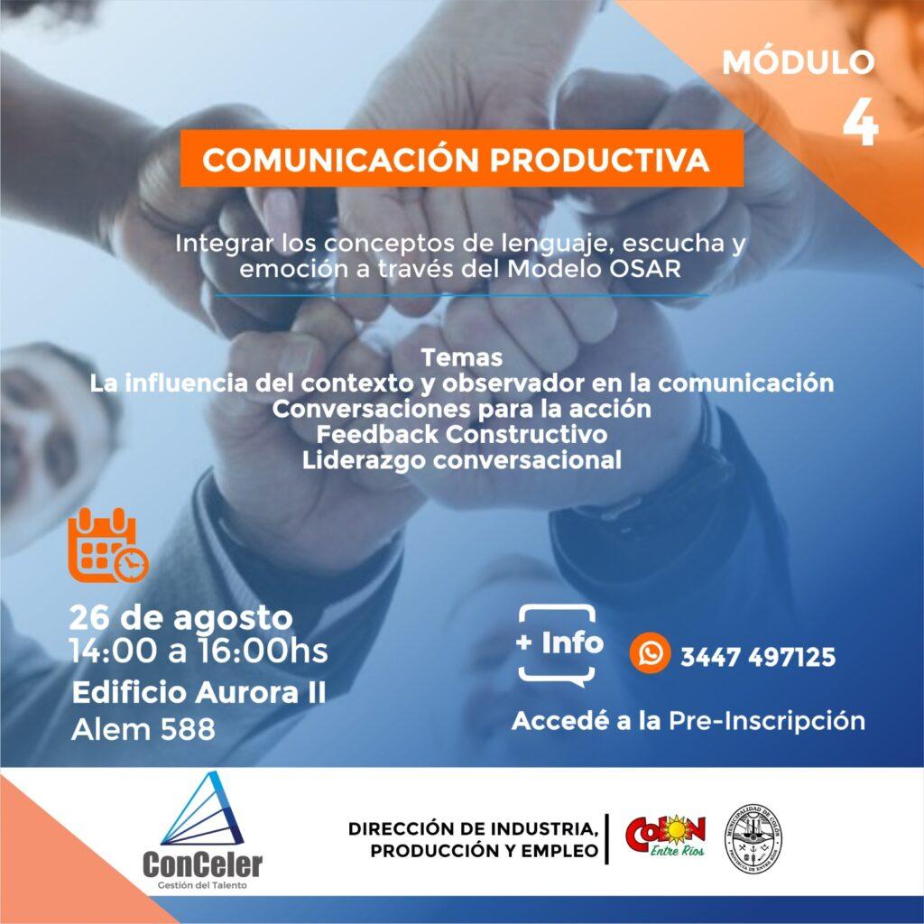 - Módulo 4 – Comunicación Productiva II (26 de agosto): diseño de conversaciones efectivas a través del Modelo OSAR y liderazgo conversacional.