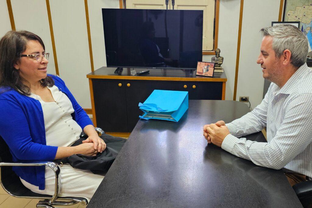 El Intendente de la Ciudad de Colón, José Luis Walser, recibió en su despacho a la nueva cónsul de Uruguay en Colón, Pierina Nuñez. La reunión tuvo como objetivo la presentación oficial de la cónsul y el intercambio de ideas sobre el trabajo conjunto que se desarrollará entre el organismo consular y el municipio.