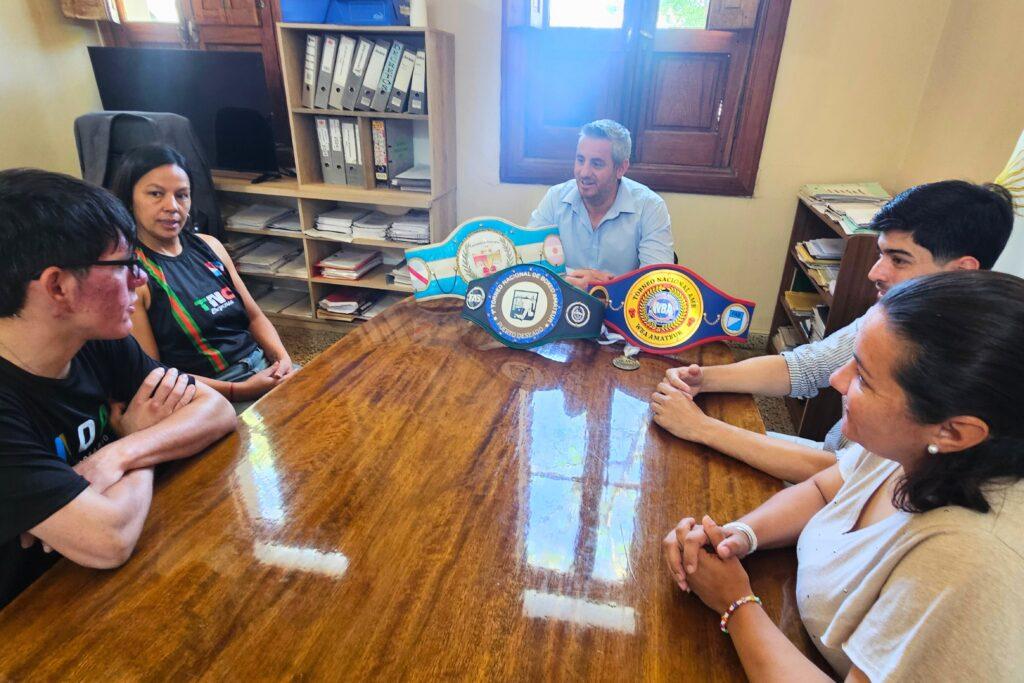 El intendente de Colón, José Luis Walser, junto al secretario de Desarrollo Humano Juan Pablo Villalba y la directora de Deportes Jésica Britos, recibió en el Palacio Municipal al campeón colonense Alan Godoy y a su entrenadora del gimnasio TNC Boxing. Durante el encuentro, Godoy exhibió los títulos alcanzados en el Torneo Nacional disputado en Puerto Deseado (Santa Cruz), que lo consolidaron como referente del boxeo entrerriano y lo proyectan a nivel nacional.