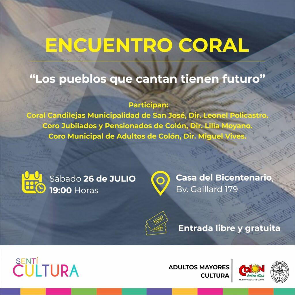 La Casa del Bicentenario será sede de un emotivo Encuentro Coral con la participación de agrupaciones corales de Colón y San José. La propuesta, organizada por la Dirección de Cultura y el Área de Adultos Mayores, invita a disfrutar de un espectáculo libre y gratuito que pone en valor la música y la expresión colectiva.
