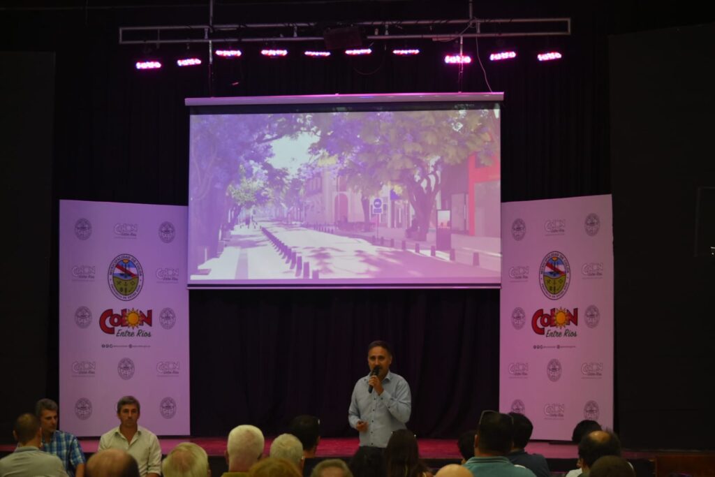 Durante el encuentro, el presidente municipal presentó renders, detalles técnicos y el esquema general de ejecución ante comerciantes y frentistas, con el objetivo de despejar dudas, explicar los tiempos de obra y comenzar una instancia de trabajo conjunto para reducir el impacto de la intervención sobre la actividad cotidiana del principal corredor comercial y turístico de Colón.
