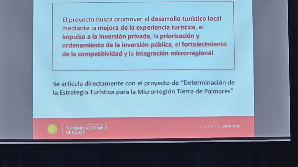 En ese sentido, remarcó que Colón y la microrregión “no pueden crecer desde la improvisación ni desde la expresión de deseos, sino desde políticas públicas con continuidad, respaldo técnico y trabajo mancomunado entre el Estado, el sector privado, la provincia y organismos nacionales”. Walser subrayó además que el turismo es uno de los pilares del desarrollo económico local y regional, y afirmó que “este plan marca el camino para consolidar a Colón y a Tierra de Palmares como un destino turístico internacional, generando empleo, arraigo y oportunidades para nuestra comunidad”.