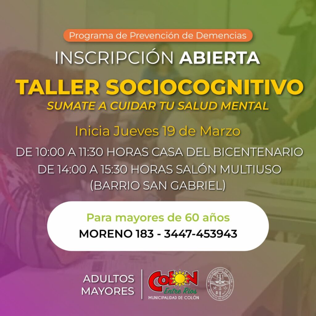 Enmarcado en el Programa de Prevención de Demencias, este taller comenzará el próximo jueves 19 de marzo. La propuesta tiene como objetivo principal el cuidado de la salud mental mediante ejercicios de estimulación cognitiva. Los interesados podrán optar por dos sedes y horarios: