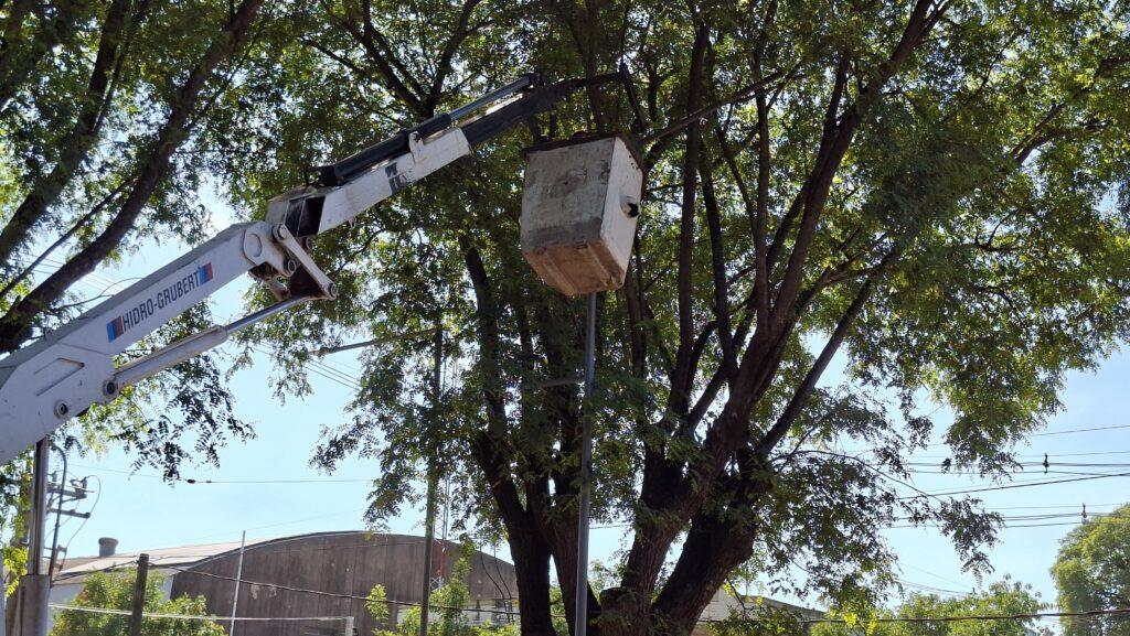 En el mismo sector, se avanza también con el tendido de la nueva red de alumbrado LED, trabajos complementarios del Plan Municipal de Pavimentación.