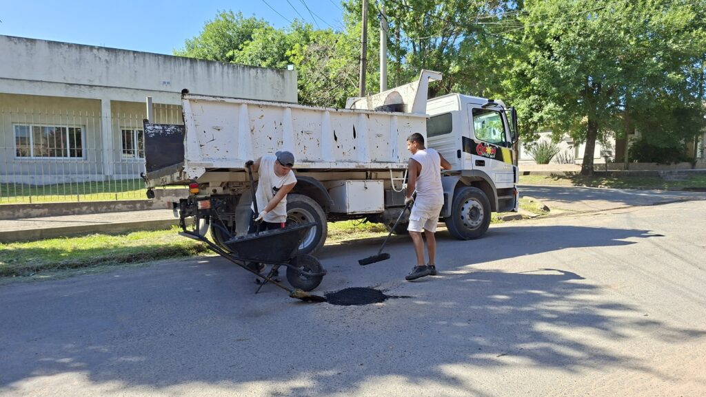 Por otro lado, maquinaria de la comuna realiza tareas de enripiado por varios sectores de la Ciudad, y cuadrillas municipales encaran trabajos de bacheo de asfalto, de hormigón y también de adoquines.