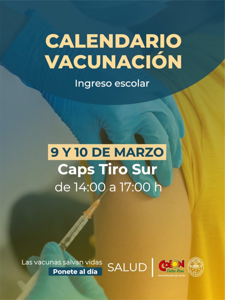 La Municipalidad de Colón, a través de su área de salud, anuncia la realización de una nueva jornada de vacunación destinada específicamente a niños y niñas en etapa de ingreso escolar. Esta iniciativa busca facilitar a las familias el cumplimiento del Calendario Nacional de Vacunación en un horario extendido y un punto estratégico de la ciudad.