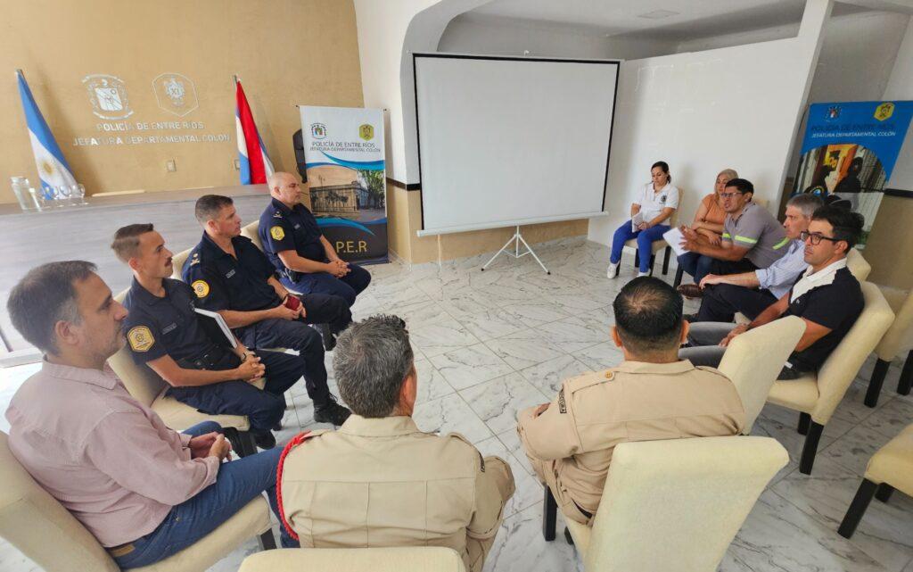 Participaron de la reunión el subjefe Departamental de Policía, funcionarios de la división Operaciones, el jefe de Prefectura Naval Argentina de Colón, y los secretarios municipales de Gobierno y Hacienda, junto a responsables de áreas de inspección y habilitaciones.