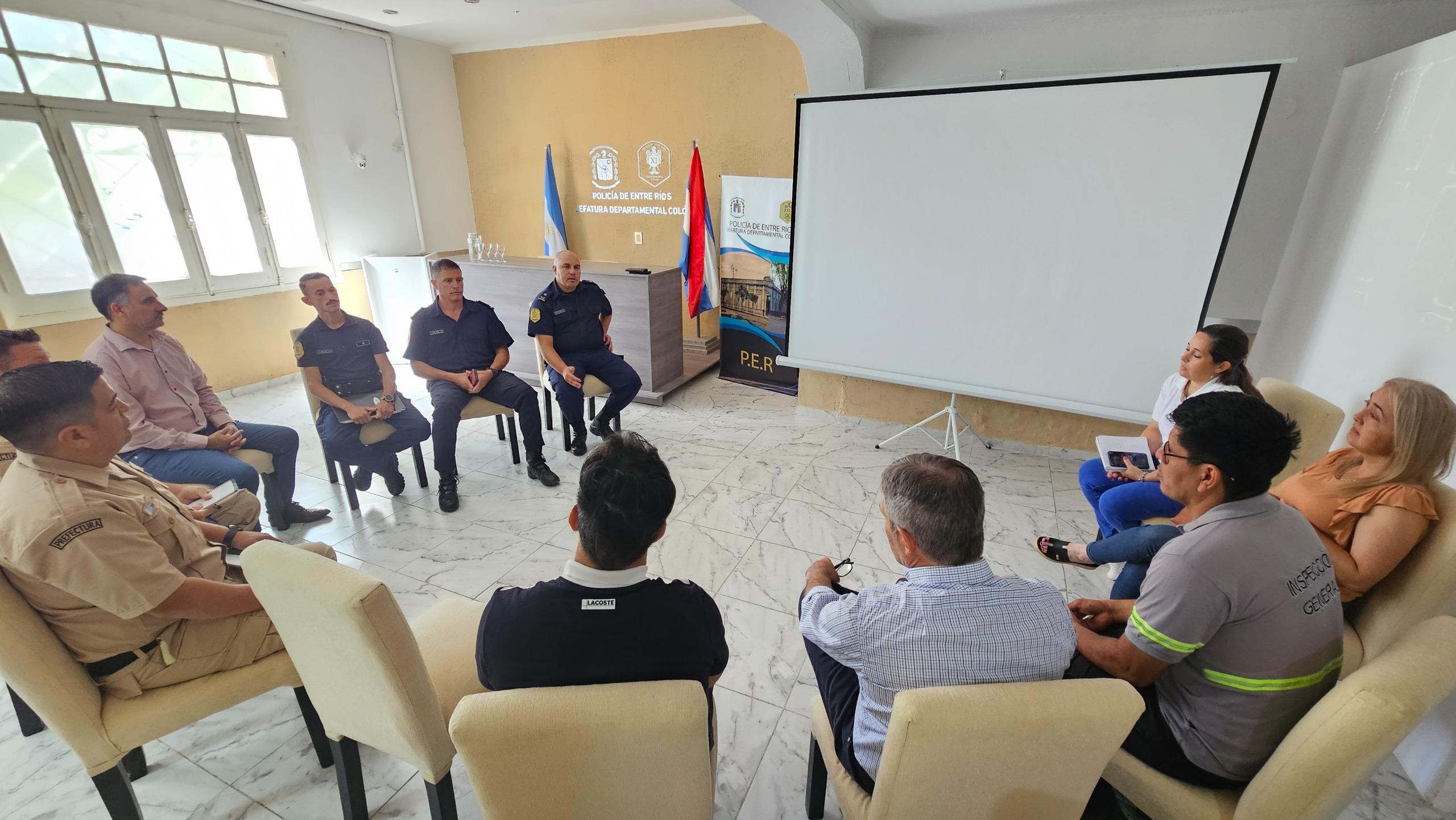 Participaron de la reunión el subjefe Departamental de Policía, funcionarios de la división Operaciones, el jefe de Prefectura Naval Argentina de Colón, y los secretarios municipales de Gobierno y Hacienda, junto a responsables de áreas de inspección y habilitaciones.