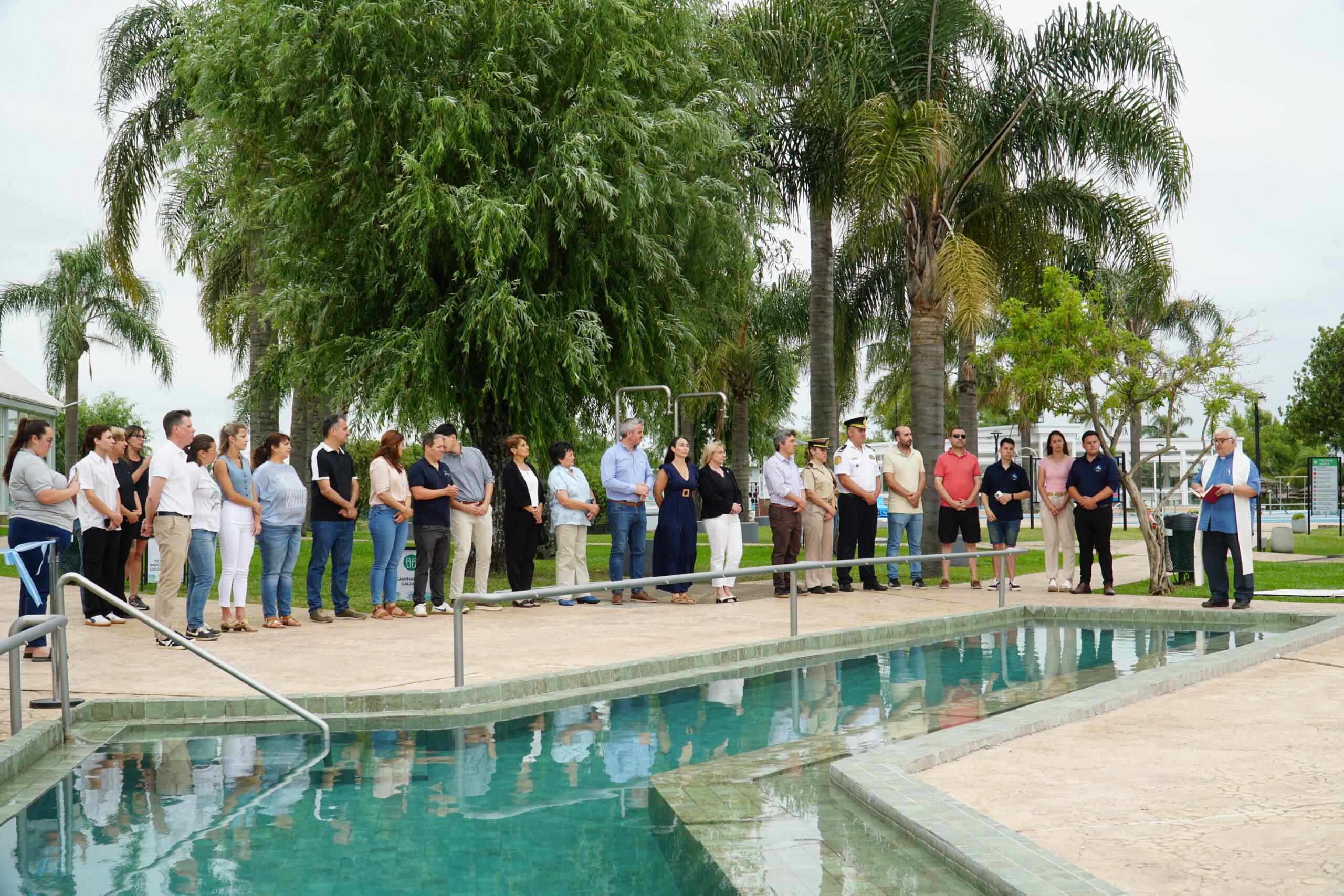 El acto contó con la participación del intendente José Luis Walser, el secretario de Turismo y Cultura Federico Escher, el gerente comercial de Termas Colón Sebastián García, el secretario de Desarrollo Humano Juan Pablo Villalba, el secretario de Gobierno Mariano Bravo, funcionarios, concejales, representantes de fuerzas de seguridad y prestadores turísticos. También acompañaron los nuevos directores de la Caja de Jubilaciones y Pensiones de Colón, su presidenta Beatriz Aguilar y Estela Lanchez. La bendición de las aguas estuvo a cargo del padre Rubén Dalzotto.