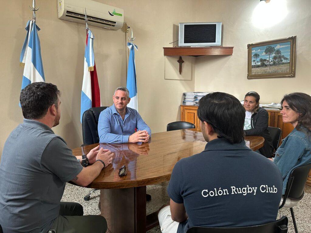 El intendente de Colón, José Luis Walser, recibió en su despacho a integrantes del Colón Rugby Club luego de que el equipo se consagrara campeón del Torneo Provincial Desarrollo. Participaron del encuentro Cristian Nascimento (subcapitán), Sergio Giacomozzi (entrenador) y Ana Fabre (presidenta de la institución). Acompañó la directora de Deportes, Jésica Britos.